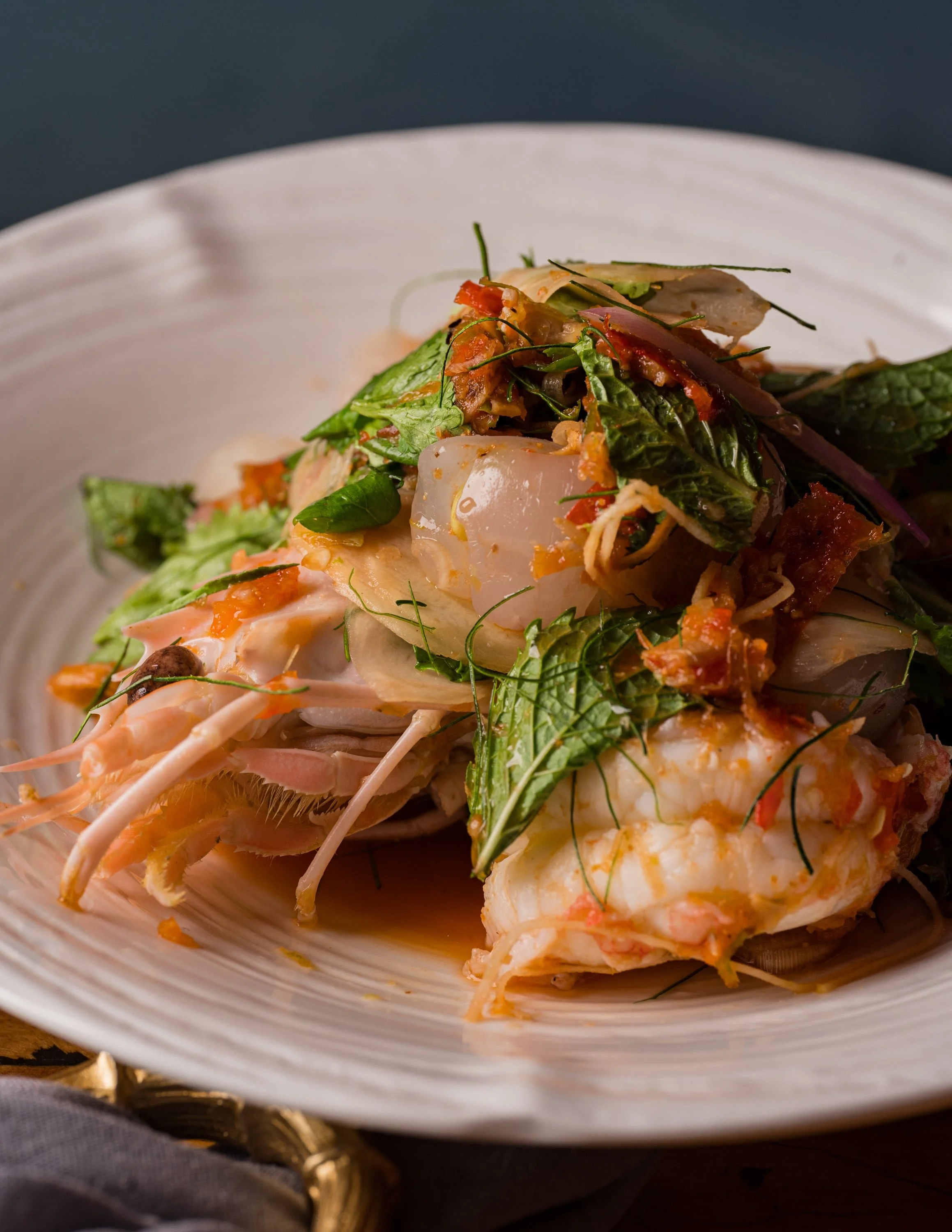 bring along a bottle of wine that you feel will work alongside our 4-course seasonal menu for $89 per person including corkage, richly flavoured but not overly spicy, what do you have in your cellar?